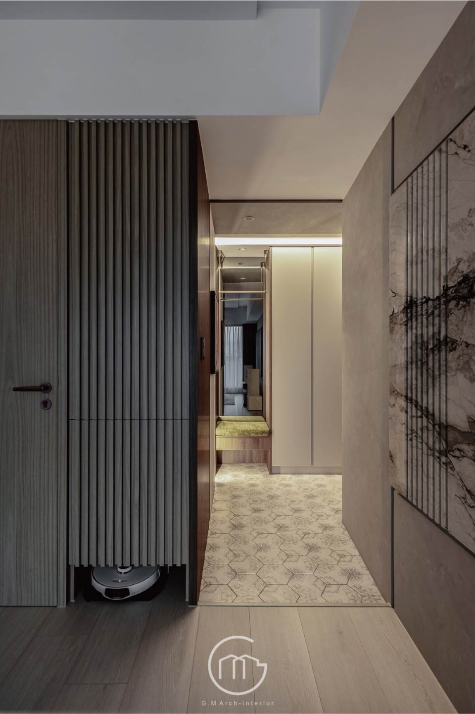 本案為單身女性專屬的私密寓所,自毛胚屋階段即介入規劃,以細膩工法重新定義「家」的維度。空間著重於動線的流暢與材質的對話,從沈浸式的玄關過道至大器的客廳主景,每一處細節皆是對生活品質的極致追求,展現出現代女性獨立而自信的優雅品味。